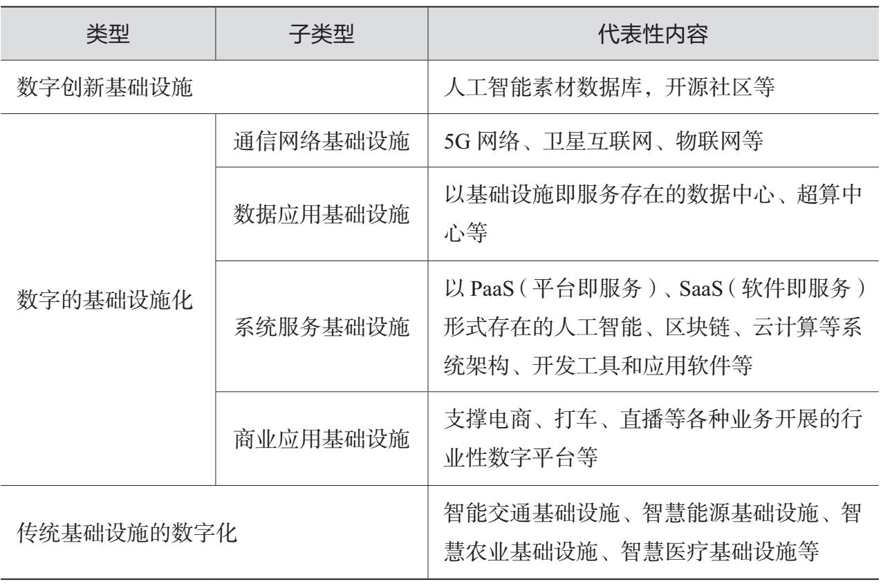 2.数字的基础设施化,是由新一代数字的工程化、产业化所形成的设备、设施等物质资产和标准、算法、软件、系统等无形资产,是科技创新、产业发展、居民生活、公共治理活动不可或缺的基础条件。